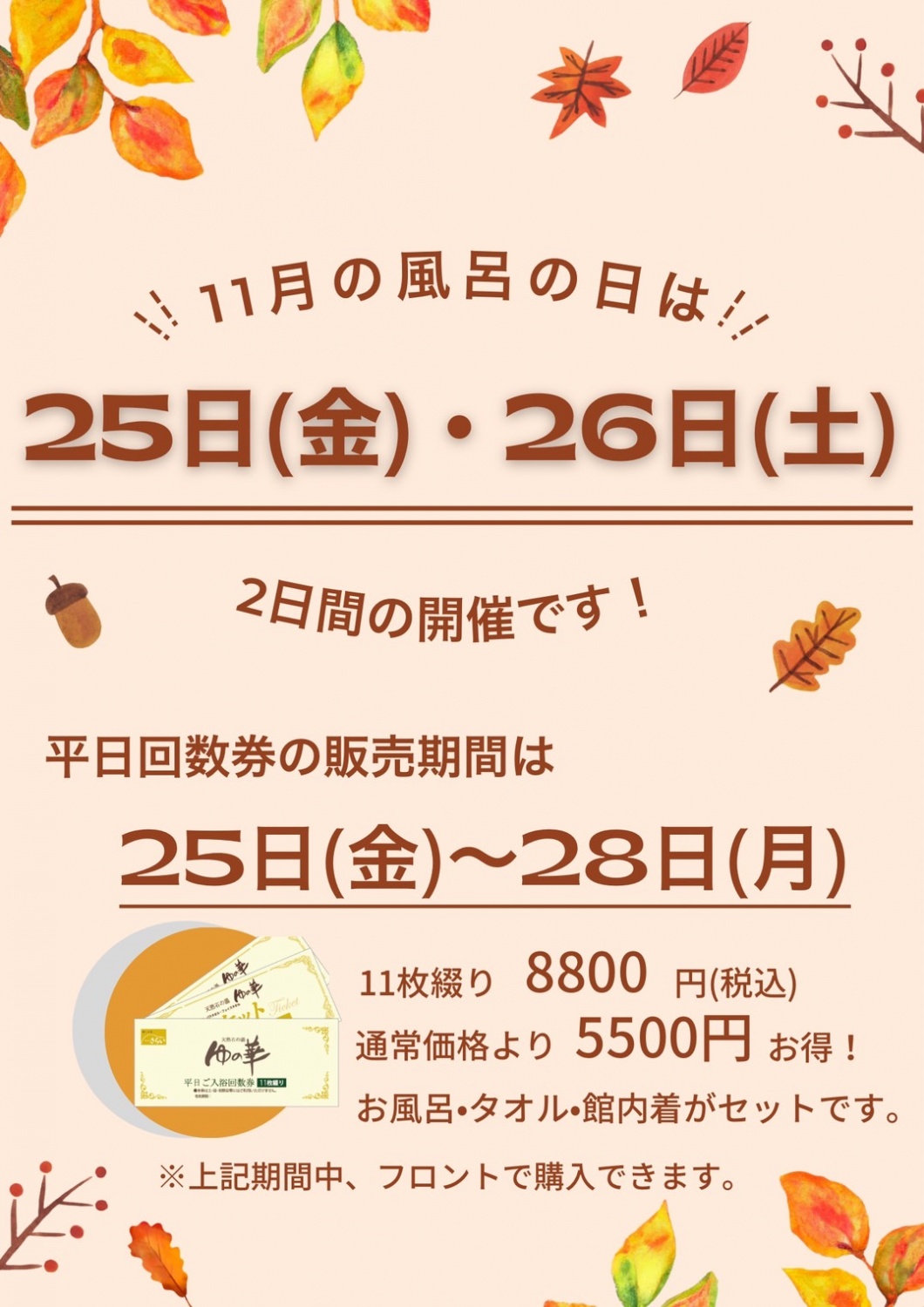 11月のふろの日&平日回数券の販売期間